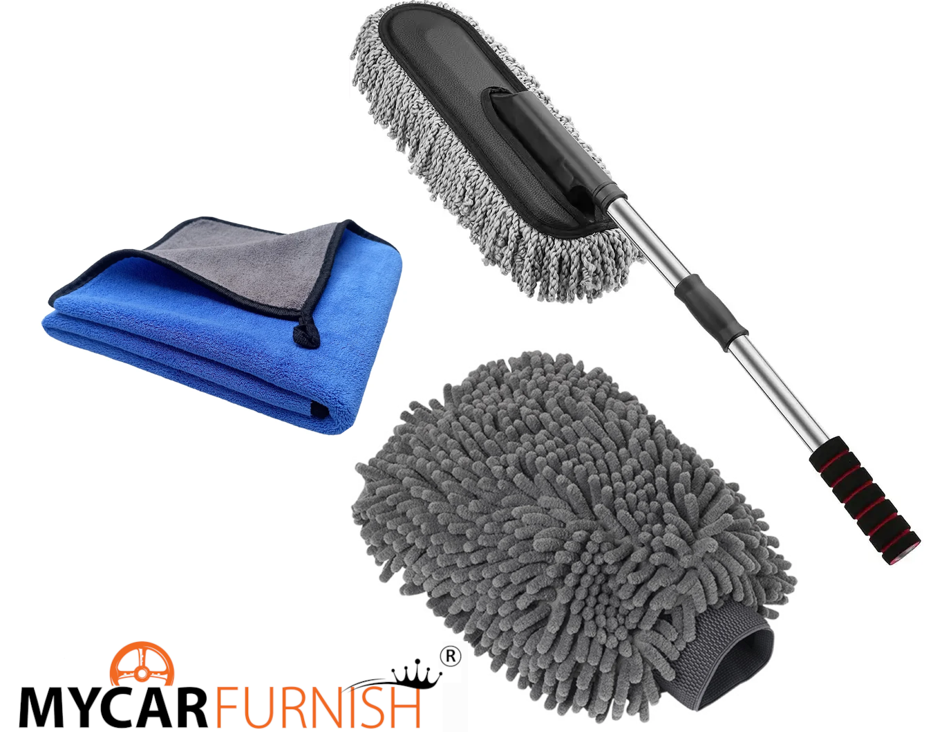 • 🚗 Complete Car Cleaning Kit – Cloth + Duster + Wash Mitt in one combo